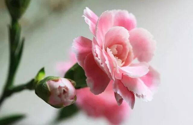 (Carnation)康乃馨在16世纪初期出现在英语中,关于carnation的词源有两种说法。其中一种说法认为,carnation可能是coronation(加冕礼)的变体,因为康乃馨的锯齿状花瓣好像皇冠,又或者是因为人们把这种花当花冠佩戴。第二种说法与康乃馨的原色有关,认为carnation这个名字来自中古法语carnation(粉红的气色)。