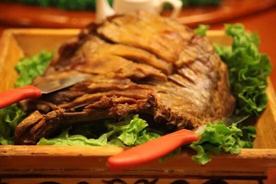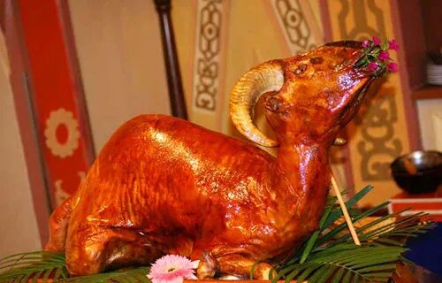 肉类和奶制品是蒙古人喜爱的食品,烤全羊、手扒肉更是具有蒙古特色的美味佳肴。