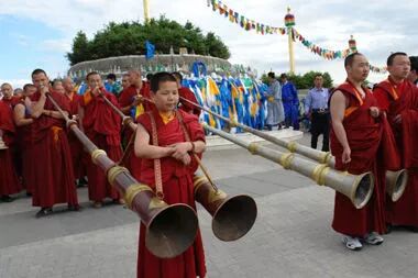 蒙古国的国徽外环有“万字不到头”。中间是一匹飞奔的骏马,象征游牧民族;马下是饰以荷花花瓣的法轮,象征其国教藏传佛教。