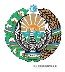 乌兹别克斯坦国徽下方为旭日和地球,上方有一颗五角星,中间是锤子与镰刀,两侧是麦穗和棉花。